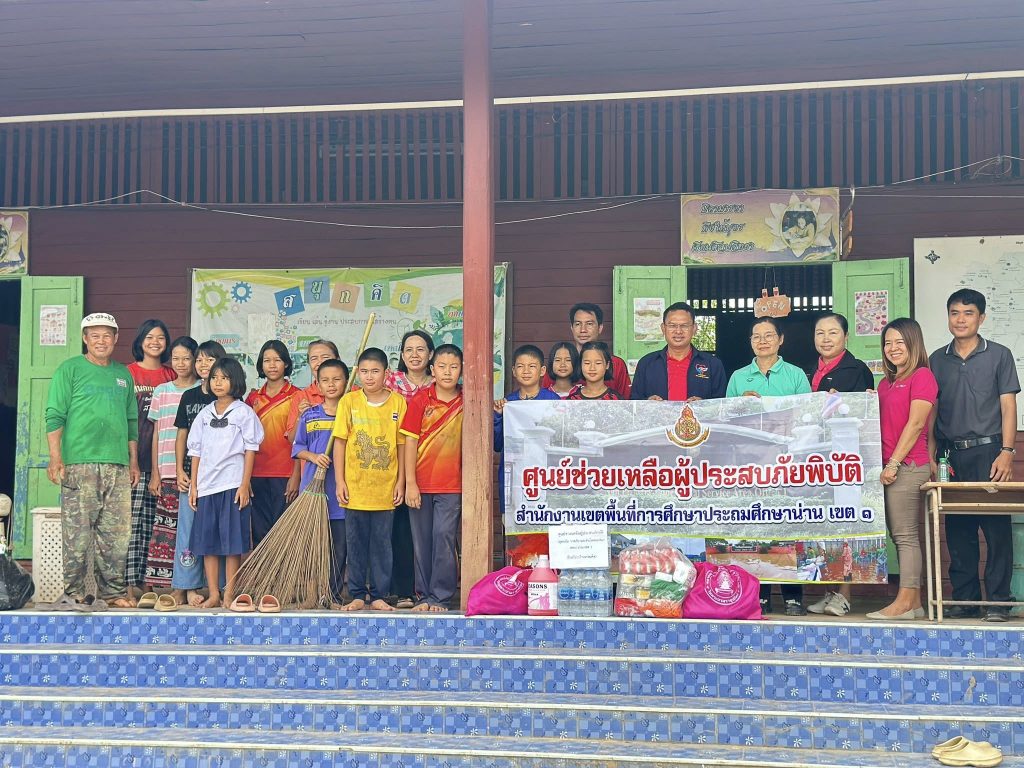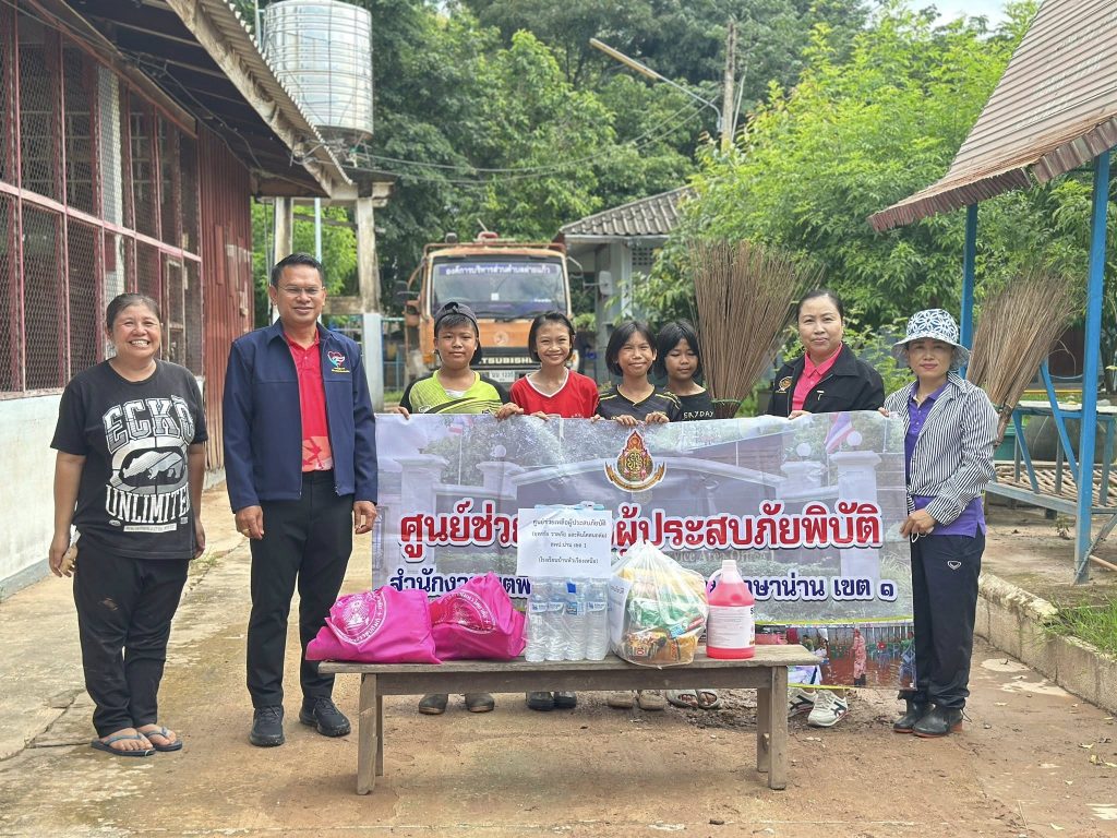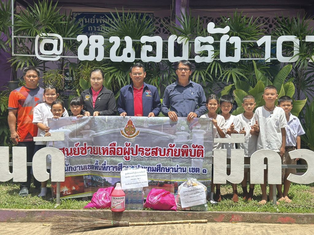 เมืองจัง โรงเรียนบ้านหาดเค็ด โรงเรียนบ้านหนองรังมิตรภาพที่ 107 โรงเรียนบ้านม่วงตึ๊ด พร้อมมอบถุงยังชีพเเละเครื่องอุปโภคบริโภค รวมทั้งตรวจสอบความเสียหายเพื่อให้โรงเรียนฟื้นฟูให้เร็วที่สุด เเละมีความปลอดภัยในการเดินทาง