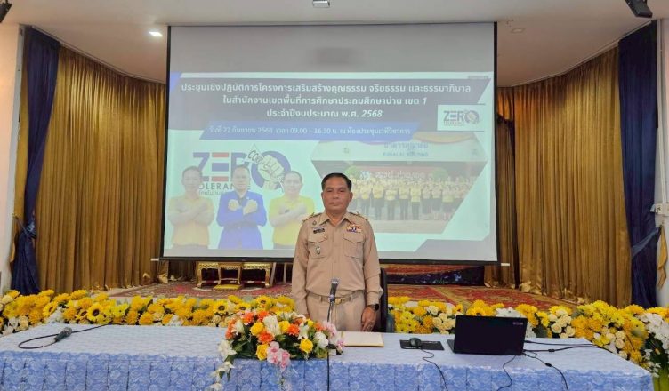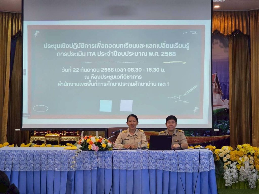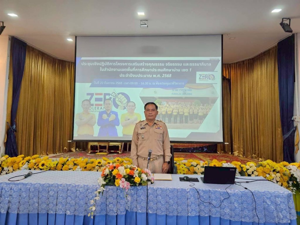 วันที่ 22 กันยายน 2568 เวลา 09.00 น. นายพิเชษฐ์ วงศ์สวัสดิ์ รองผู้อำนวยการสำนักงานเขตพื้นที่การศึกษาประถมศึกษาน่าน เขต 1 ประธานเปิดการประชุมเชิงปฏิบัติการโครงเสริมสร้างคุณธรรม จริยธรรม และธรรมาภิบาลในสำนักงานเขตพื้นที่การศึกษา ประจำปีงบประมาณ พ.ศ. 2568 ณ ห้องประชุมเวทีวิชาการ สำนักงานเขตพื้นที่การศึกษาประถมศึกษาน่าน เขต 1 เพื่อถอดบทเรียนและวิเคราะห์ผล ปี พ.ศ 2567 นำสู่การพัฒนา ปี พ.ศ. 2568