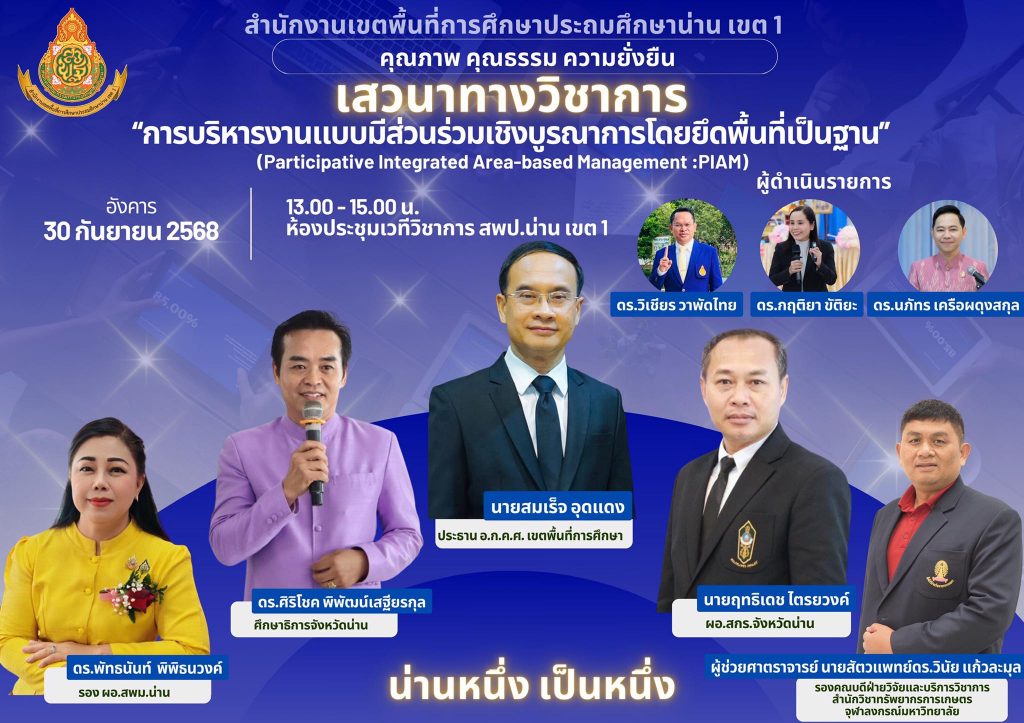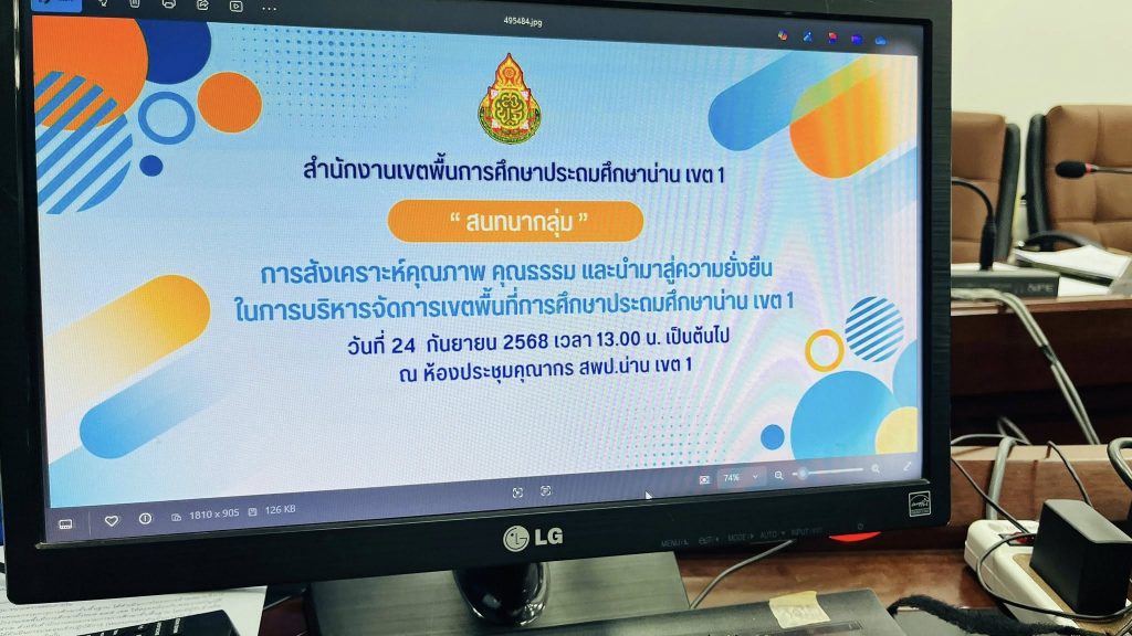 วันที่ 24 กันยายน 2568 เวลา 13.00 น. ดร.วิเชียร วาพัดไทย ผู้อำนวยการสำนักงานเขตพื้นที่การศึกษาประถมศึกษาน่าน เขต 1 ดำเนินกิจกรรม “สนทนากลุ่ม” การสังเคราะห์คุณภาพ คุณธรรม และนำมาสู่ความยั่งยืน ในการบริหารจัดการเขตพื้นที่การศึกษาประถมศึกษาน่าน เขต 1 ณ ห้องประชุมคุณากร สำนักงานเขตพื้นที่การศึกษาประถมศึกษาน่าน เขต 1