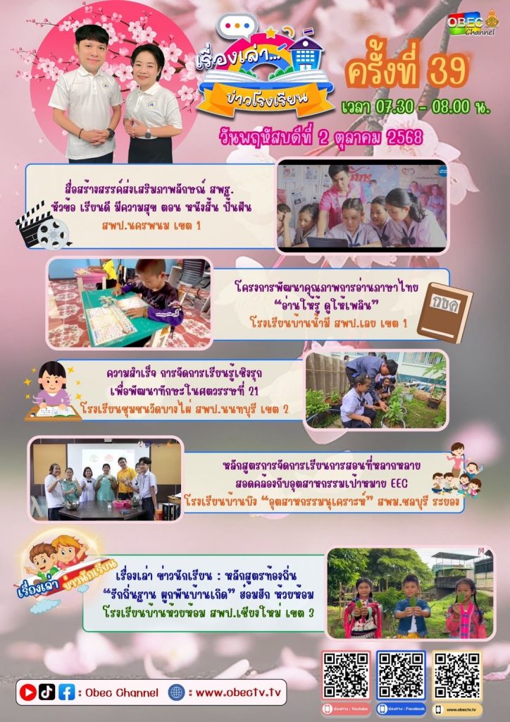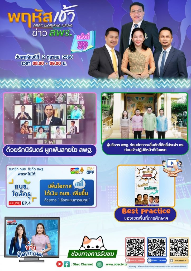 รายการพฤหัสเช้า ข่าวสพฐ. ครั้งที่ 39/2568 ประจำวันพฤหัสบดีที่ 2 ตุลาคม 2568 ตุลาคม 2, 2025ตุลาคม 2, 2025admin