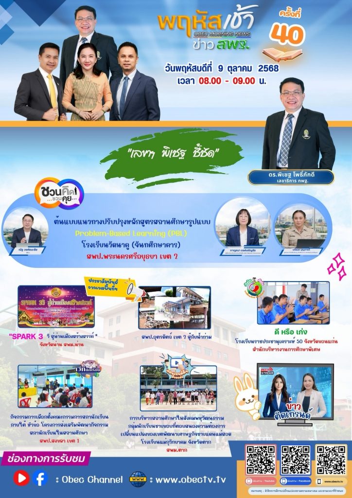รายการพฤหัสเช้า ข่าวสพฐ. ครั้งที่ 40/2568 ประจำวันพฤหัสบดีที่ 9 ตุลาคม 2568 ตุลาคม 9, 2025pipat muenpeng