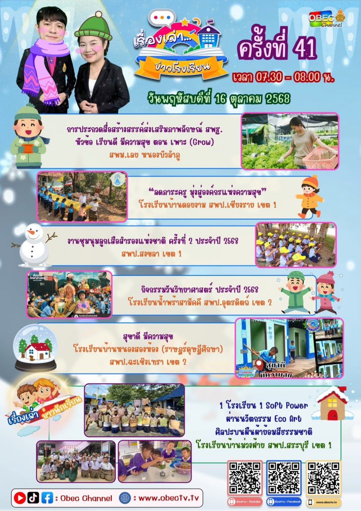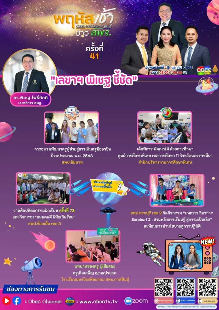 รายการพฤหัสเช้า ข่าวสพฐ. ครั้งที่ 41/2568 ประจำวันพฤหัสบดีที่ 16 ตุลาคม 2568 ตุลาคม 16, 2025ตุลาคม 16, 2025admin