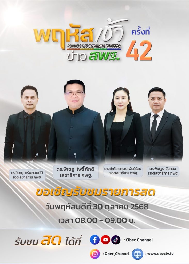 ร่วมประชุมพฤหัสเช้า ข่าวสพฐ. ครั้งที่ 42/2568 ประจำวันพฤหัสบดีที่ 30 ตุลาคม 2568 ตุลาคม 30, 2025ตุลาคม 30, 2025admin