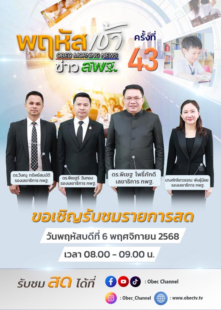 ร่วมประชุมพฤหัสเช้า ข่าวสพฐ. ครั้งที่ 43/2568 ประจำวันพฤหัสบดีที่ 6 พฤศจิกายน 2568 พฤศจิกายน 6, 2025pipat muenpeng